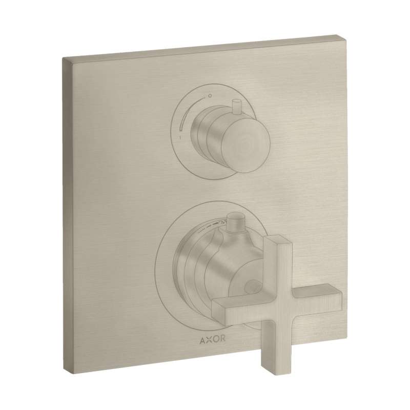 • Axor Citterio Thermostatic Trim With Volume Control And Diverter- Cross Handle In Brushed Nickel, 39725821 Brushed Nickel