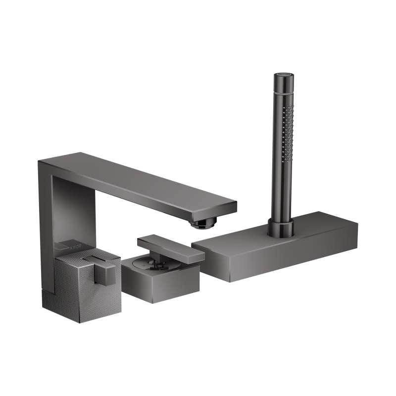 • Axor Edge 3-Hole Roman Tub Set Trim With 1.75 Gpm Handshower - Diamond Cut In Polished Black Chrome, 46431331 Polished Black Chrome