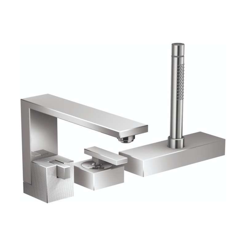 • Axor Edge 3-Hole Roman Tub Set Trim With 1.75 Gpm Handshower - Diamond Cut In Chrome, 46431001 Chrome