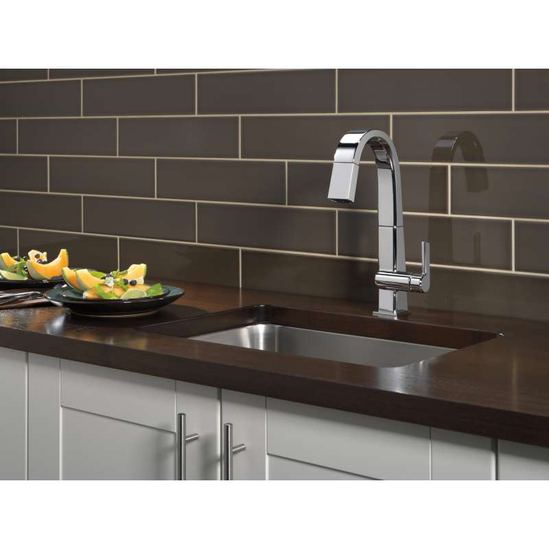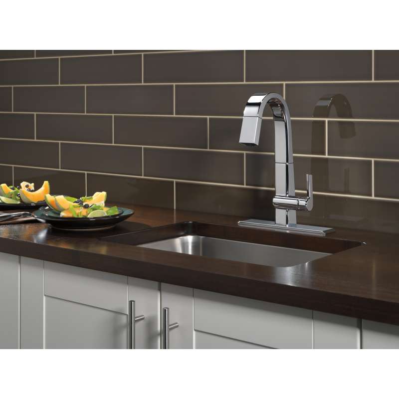 The confident slant of the Pivotal Collection makes it a striking addition to your kitchen's contemporary geometry for a look that makes a statement. Delta MagnaTite Docking uses a powerful integrated magnet to pull your faucet spray wand precisely into place and hold it there so it stays docked when not in use. Delta faucets with DIAMOND Seal Technology perform like new for life with a patented design which reduces leak points, is less hassle to install and lasts twice as long as the industry standard. You can install with confidence, knowing that Delta faucets are backed by our Lifetime Limited Warranty. Industry standard is based on ASME A112.18.1 of 500,000 cycles.