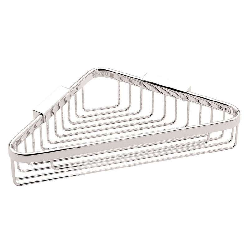 9.1in Wall Mounted Brass Corner Shower Basket Polished Chrome, Satin Nickel