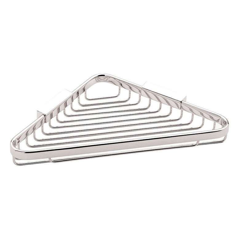 9in Wall Mounted Brass Corner Shower Basket Polished Chrome, Satin Nickel