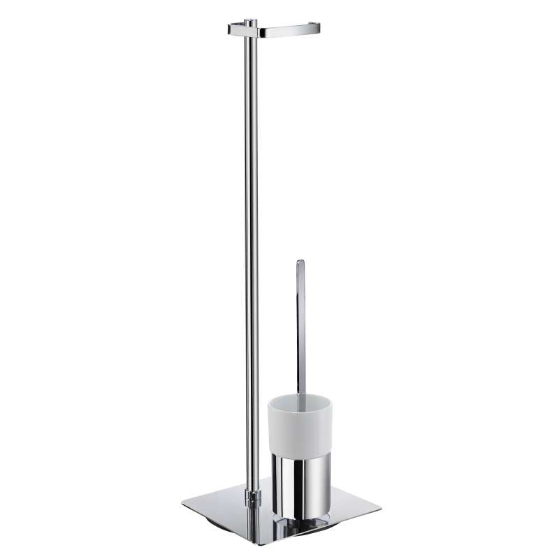 Outline FK322P Toilet Roll Holder (Freestanding)/Toilet Brush With Porcelain Glass Container in Polished Chrome/White Porcelain Polished Chrome / White Porcelain