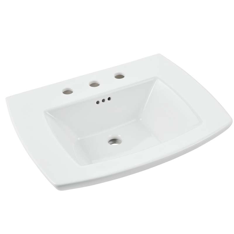 The Edgemere bathroom sink top from American Standard has 4-inch centers to pair with one of our beautiful bathroom faucets. This elegant sink top can be paired with the Edgemere pedestal sink leg or the console sink legs, providing you with a customized bathroom that fits your needs. This expertly crafted sink top installs easily on the Edgemere sink legs, and was designed to match a variety of bathroom styles.
