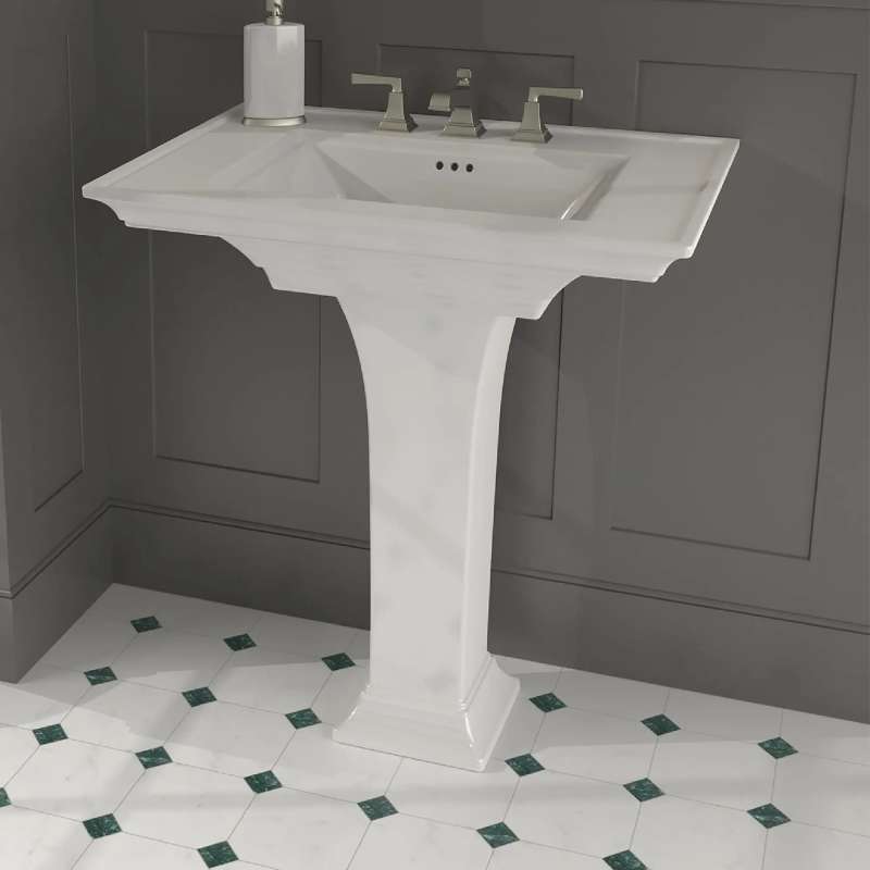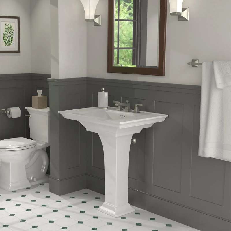 Classic American architecture designed for the modern life bathroom, incorporate architectural details such as crown molding & stately square shapes. The signature design elements carry across all of the collection pieces, with stylish designs that do not compromise on functionality, including: Flat, wide tank lid for placing bathroom accessories, large useful working spaces on the lavatories and Towel bar storage on the furniture.