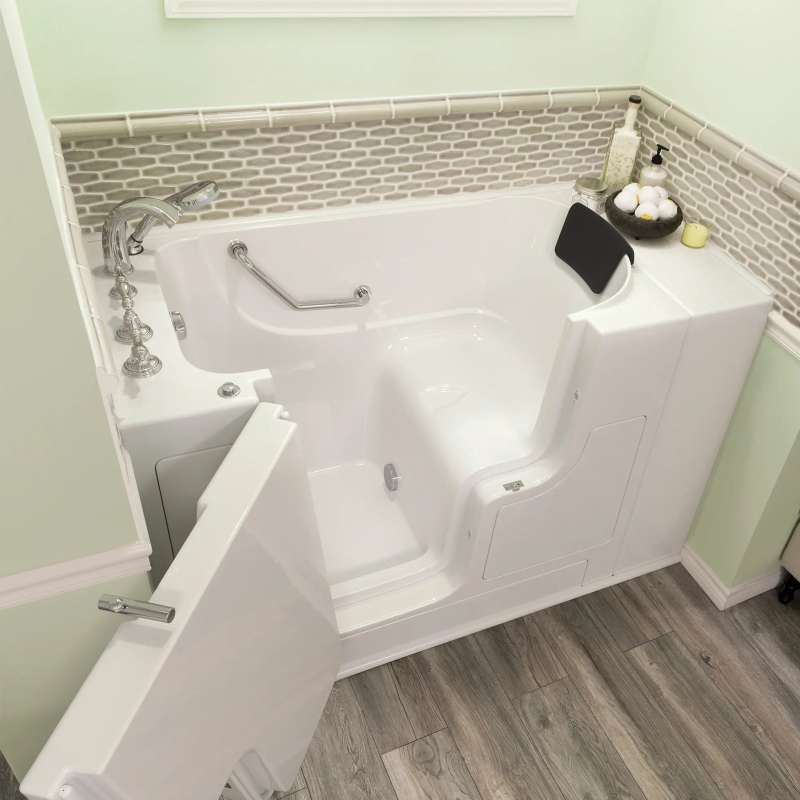 Gelcoat Premium Series 30 in. x 52 in. Outward Opening Door Soaking Walk-In Bathtub fits in smaller spaces and uses less water - the included Extender Kit makes it easy to retrofit in a standard-size bath space. Fully equipped, the Premium Series offers all the latest in safety and comfort features with the most advanced therapeutic option.
