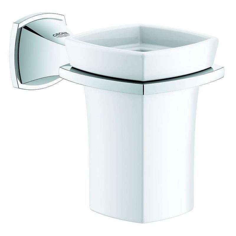 Grandera Ceramic Tumbler With Holder Chrome, Brushed Nickel