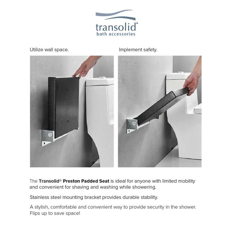 Shower seat, fold-up shower seat, cushioned shower seat, shower bench, bathroom seat, wall-mounted seat, 14-in shower seat, 14 inch seat, 20-in shower seat, 20 inch seat, vinyl shower seat, vinyl shower seat