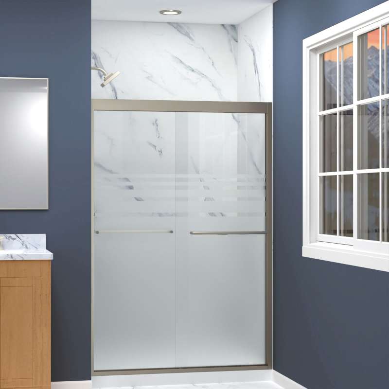 The Transolid Frederick Semi-Frameless By-Pass Shower Door Collection combines the practicality of a space saving design with custom quality craftsmanship. The collection features thick, premium 5/16 in. (8mm) frosted tempered glass with professionally applied Nano clear glass coating, which provides superior dirt and water repellant and stain resistant benefits. TruMotion® technology makes our shower doors close softly and effortlessly no matter how hard you slam them or how heavy they are and the Frederick door provides up to 2/5 in. of out-of-plumb adjustability on each side to provide a watertight fit in your alcove. The Frederick Door is available in a wide array of width and height options with several desirable hardware finish options to match your bathroom's interior design and layout perfectly. Built for an alcove (3-wall) shower enclosure, sliding glass shower doors can be opened from left or right with its full by-pass (both panels slide) design. 20 in. (500 mm from center to center) sliding shower door handles also function as towel bars, providing handy storage space for a folded bath towel or two hand towels. Multiple Transolid handle options are available, but this combination features the traditional Turin handles in a Brushed Stainless finish. The Turin handles are part of the Meridian series and feature a unique, high-end design, adding a distinctive look to your Frederick shower door. These handles are substantial in weight and are every bit as functional as they are beautiful. Look for the matching grab bar to complete the look!