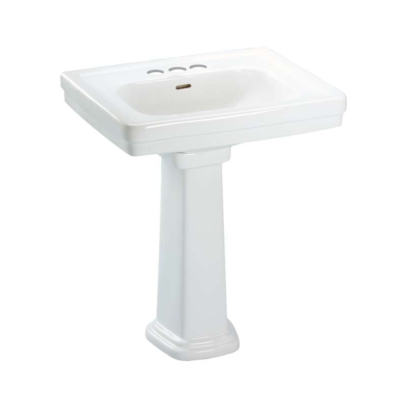 24-in Pedestal Bathroom Sink with 3 Faucet Holes Drilled and Overflow, Pedestal Included
