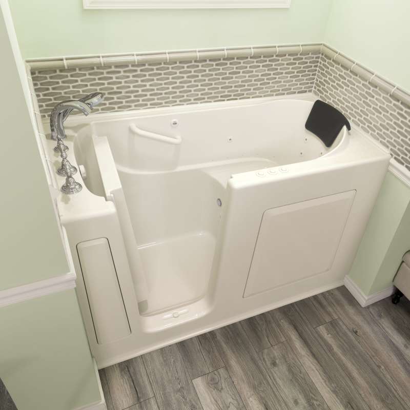 Gelcoat Premium Series 30 in. x 60 in. Walk-In Bathtub with Combination Air Spa system and Whirlpool Massage system fits in a standard-size bath space. Fully equipped, the Premium Series offers all the latest in safety and comfort features with the most advanced therapeutic option.
