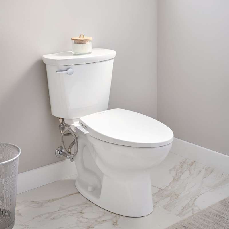 The AquaWash Slim Non-Electric SpaLet Bidet Seat from American Standard has a sleek, low profile and is equipped with features that ensure a complete, comfortable cleansing experience. Ergonomic side handle controls dual, self-cleaning nozzles for effective, independent front and back cleansing. Designed to fit on most elongated toilets, the AquaWash Slim Bidet Seat requires no electric outlet and is easy to install.