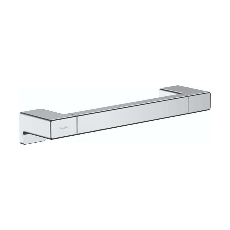 Solid towel bar from hansgrohe in chrome With the AddStoris towel bar from hansgrohe the bathroom is both functional and visually enhanced. The approx. 13.8 in wide bar a towel is always at hand and quickly dried. The modern and reduced design impresses with a clear, expressive design. It fits particularly well with geometric bathroom fittings, such as the hansgrohe line Metropol. Nice that the hansgrohe quality holds up to what the high-quality design promises: the AddStoris towel bar is made of metal and therefore particularly durable. This helps in the sustainable use of resources and reduces the plastic content in the environment. The surface is elaborately chrome-plated and is easy to clean. This means that the brilliant shine is maintained permanently. Easy to install. The towel bar is reliably attached to the wall by a total of four screws. The drilling distance on both sides is 1.1 in each.
