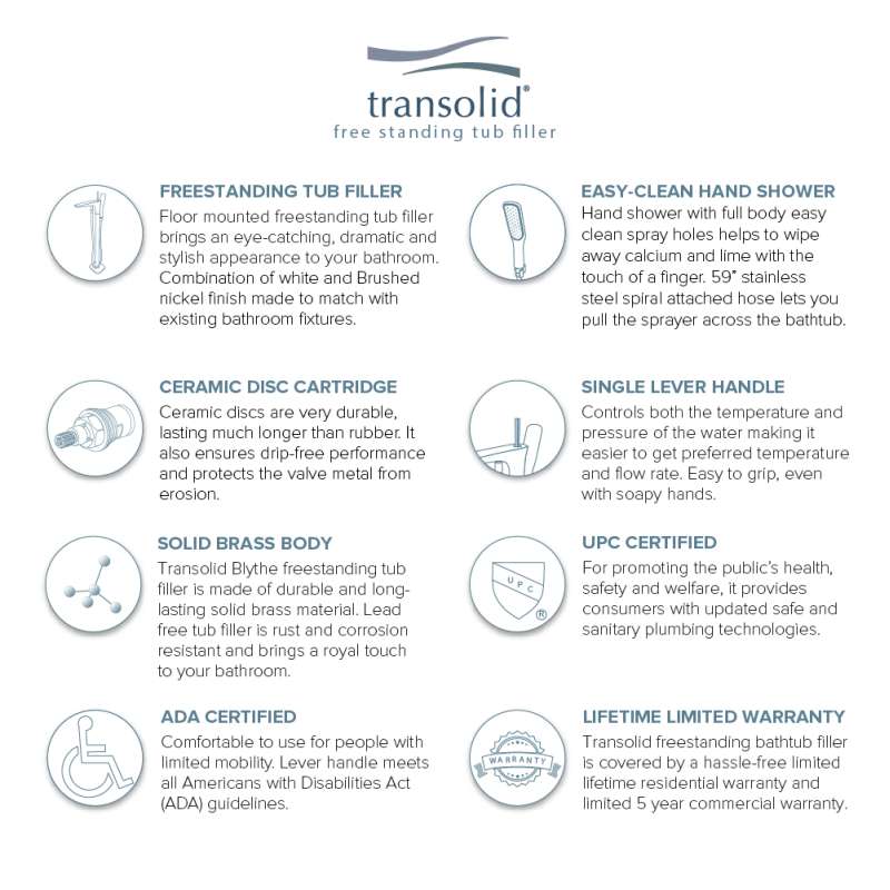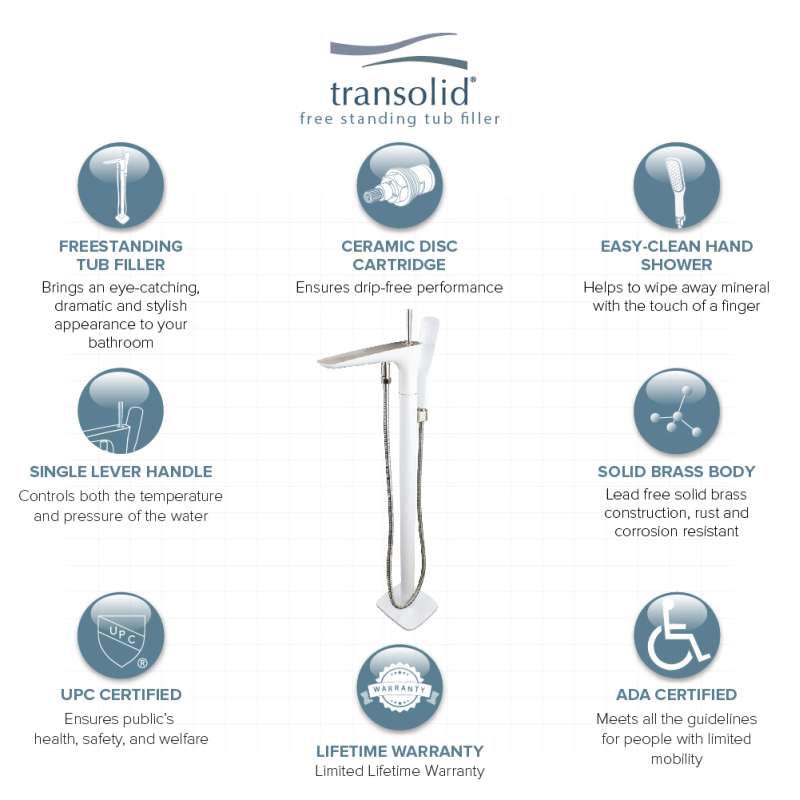 Transolid freestanding tub fillers are crafted of the highest quality materials inside and out, and we've backed them with a lifetime warranty. There's a tub filler for every decor from traditional to modern in polished chrome, brushed nickel, oil rubbed bronze and matte black finishes. Pair with our freestanding tubs and make a beautiful statement that speaks to your style.