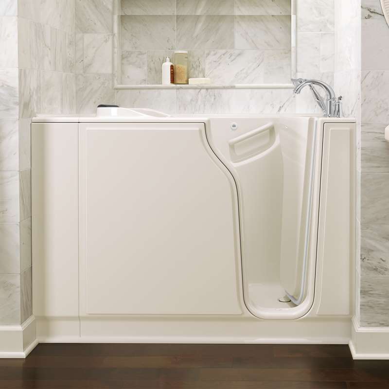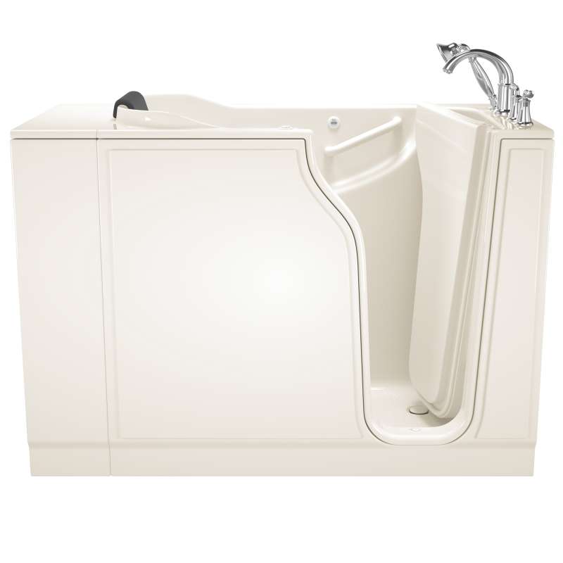 The American Standard 30-in x 52-in Gelcoat walk-in bath provides a similar bathing experience to larger models but fits in smaller spaces and uses less water. The included tub extender allows this tub to retrofit in the same space as a standard bathtub. The full sized, contoured door with a low door threshold allows ease of entry and exit. Fully equipped, the 609 Value Series offers all the latest in safety and comfort features with the most advanced therapeutic options and backed by a lifetime warranty on the door seal, a 10 year warranty on the tub shell and a 5 year warranty on all other components.