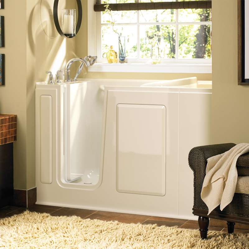 The American Standard 28-in x 48-in Gelcoat walk-in bath provides a similar bathing experience to larger models but fits in smaller spaces and uses less water. The included tub extender allows this tub to retrofit in the same space as a standard bathtub. The full sized, contoured door with a low door threshold allows ease of entry and exit. Fully equipped, the 509 Value Series offers all the latest in safety and comfort features bundled together at one low cost and backed by a lifetime warranty on the door seal, a 10 year warranty on the tub shell and a 5 year warranty on all other components.