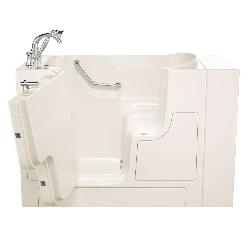 The American Standard 30-in x 52-in Gelcoat walk-in bath provides a similar bathing experience to larger models but fits in smaller spaces and uses less water. The included tub extender allows this tub to retrofit in the same space as a standard bathtub. The full sized, outward opening, contoured door with a low door threshold allows ease of entry and exit. Fully equipped, the 709 Value Series offers all the latest in safety and comfort features with the most advanced therapeutic options and backed by a lifetime warranty on the door seal, a 10 year warranty on the tub shell and a 5 year warranty on all other components.