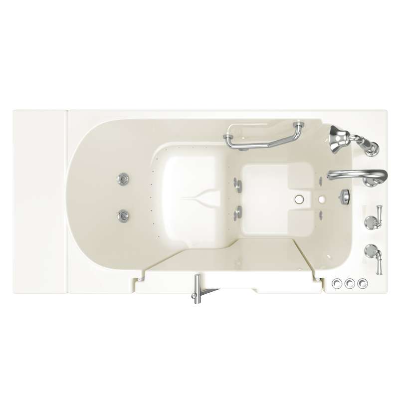 The American Standard 30-in x 52-in Gelcoat walk-in bath provides a similar bathing experience to larger models but fits in smaller spaces and uses less water. The included tub extender allows this tub to retrofit in the same space as a standard bathtub. The full sized, outward opening, contoured door with a low door threshold allows ease of entry and exit. Fully equipped, the 709 Value Series offers all the latest in safety and comfort features with the most advanced therapeutic options and backed by a lifetime warranty on the door seal, a 10 year warranty on the tub shell and a 5 year warranty on all other components.