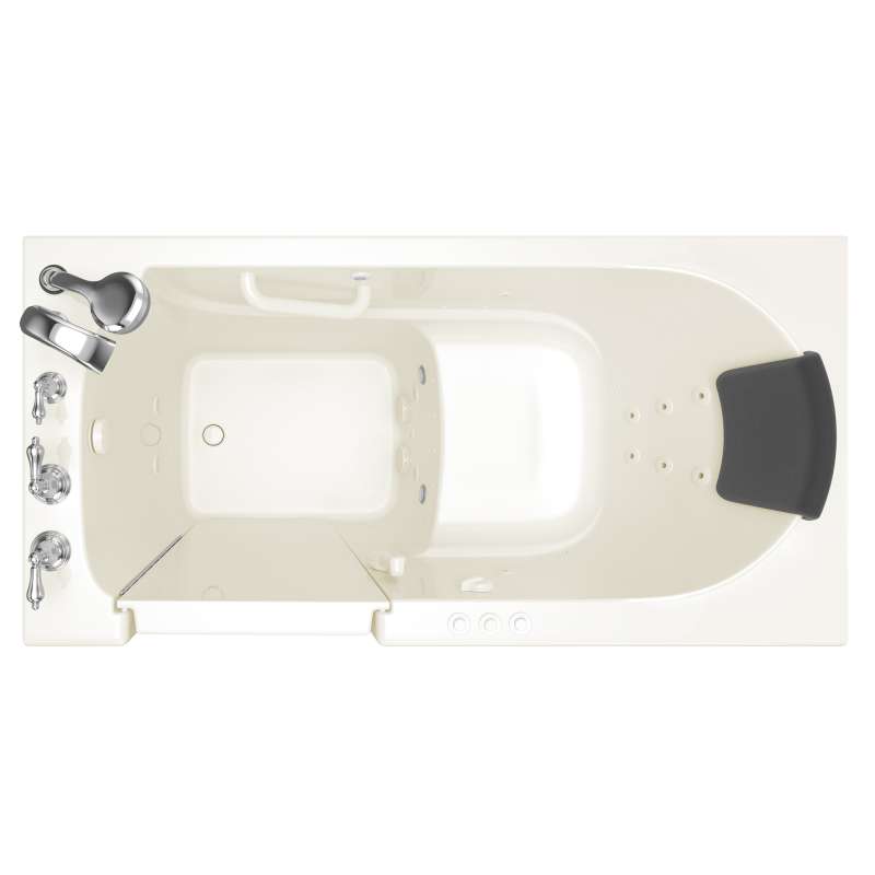 The American Standard 30-in x 60-in Gelcoat walk-in bath provides the maximum in therapeutic soaking pleasure with the largest water capacity in our product line. The full sized, contoured door with a low door threshold allows ease of entry and exit. Fully equipped, the 109 Premium Series offers all the latest in safety and comfort features with the most advanced therapeutic options and backed by a lifetime warranty on the door seal, a 10 year warranty on the tub shell and a 5 year warranty on all other components.