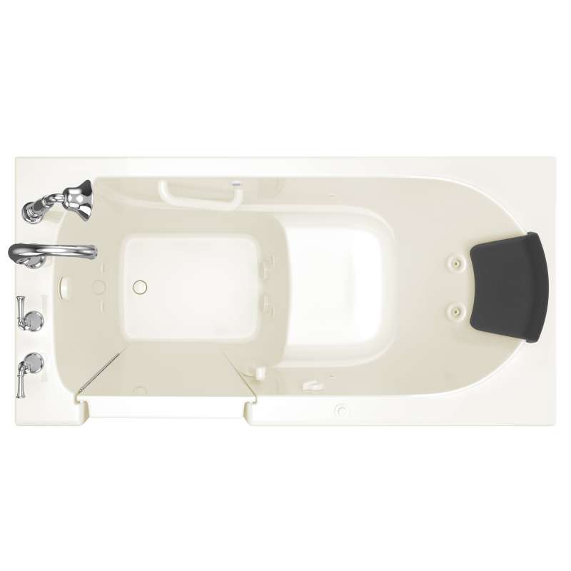 The American Standard 30-in x 60-in Gelcoat walk-in bath provides the maximum in therapeutic soaking pleasure with the largest water capacity in our product line. The full sized, contoured door with a low door threshold allows ease of entry and exit. Fully equipped, the 609 Value Series offers all the latest in safety and comfort features with the most advanced therapeutic options and backed by a lifetime warranty on the door seal, a 10 year warranty on the tub shell and a 5 year warranty on all other components.
