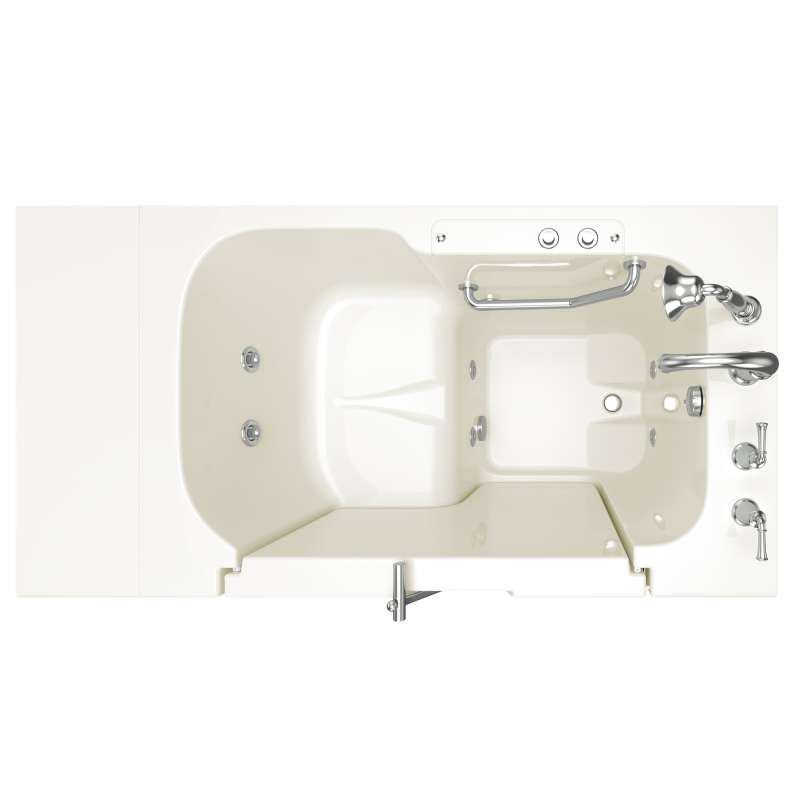 The American Standard 32-in x 52-in Gelcoat walk-in bath provides a similar bathing experience to larger models but fits in smaller spaces and uses less water. The included tub extender allows this tub to retrofit in the same space as a standard bathtub. The full sized, outward opening, contoured door with a low door threshold allows ease of entry and exit. Fully equipped, the 709 Value Series offers all the latest in safety and comfort features with the most advanced therapeutic options and backed by a lifetime warranty on the door seal, a 10 year warranty on the tub shell and a 5 year warranty on all other components.