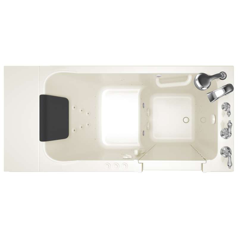The American Standard 28-in x 48-in Acrylic walk-in bath provides a similar bathing experience to larger models but fits in smaller spaces and uses less water. The included tub extender allows this tub to retrofit in the same space as a standard bathtub. The full sized, contoured door with a low door threshold allows ease of entry and exit. Fully equipped, the 119 Luxury Series offers all the latest in safety and comfort features with the most advanced therapeutic options therapeutic options and backed by a lifetime warranty on the door seal, a 15 year warranty on the tub shell and a 10 year warranty on all other components.