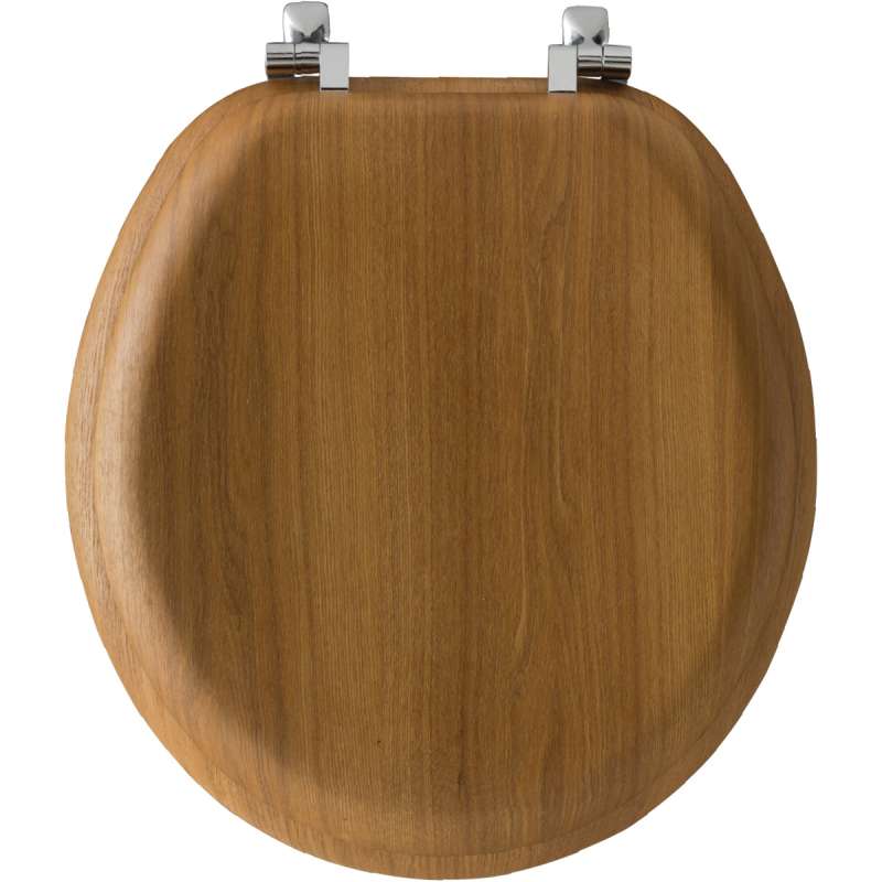 This round seat provides a unique natural wood look without splitting or cracking, complementing your bathroom décor. The chrome metal hinges are stylish and long-lasting.
