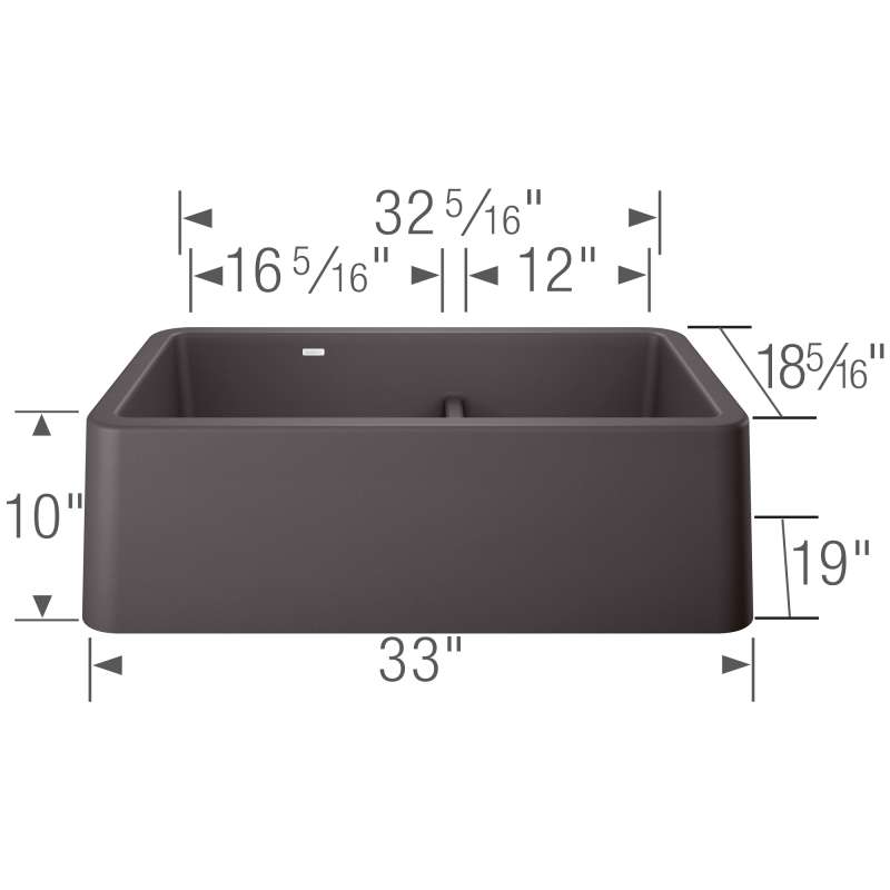 The IKON farmhouse sink is a fresh take on the classic farmhouse style. The kitchen sink's slightly angled apron-front design adds architectural detail and comes in a range of nature-inspired colors that complement the latest kitchen trends. The IKON 33 13/4 Low Divide features a convenient low divide which sits just 5-1/2" from the sink bottom, making it easier to handle large pots and baking sheets while dividing the sink into cleaning and prepping zones. Made of BLANCO's patented SILGRANIT(R) composite material, IKON sinks are engineered to withstand heavy cookware and hot bakeware. Combine the IKON 33" double bowl sink with a BLANCO faucet and accessories to create a BLANCO UNIT; a seamless, fully-integrated kitchen solution designed to transform kitchen chores into joyful experiences.