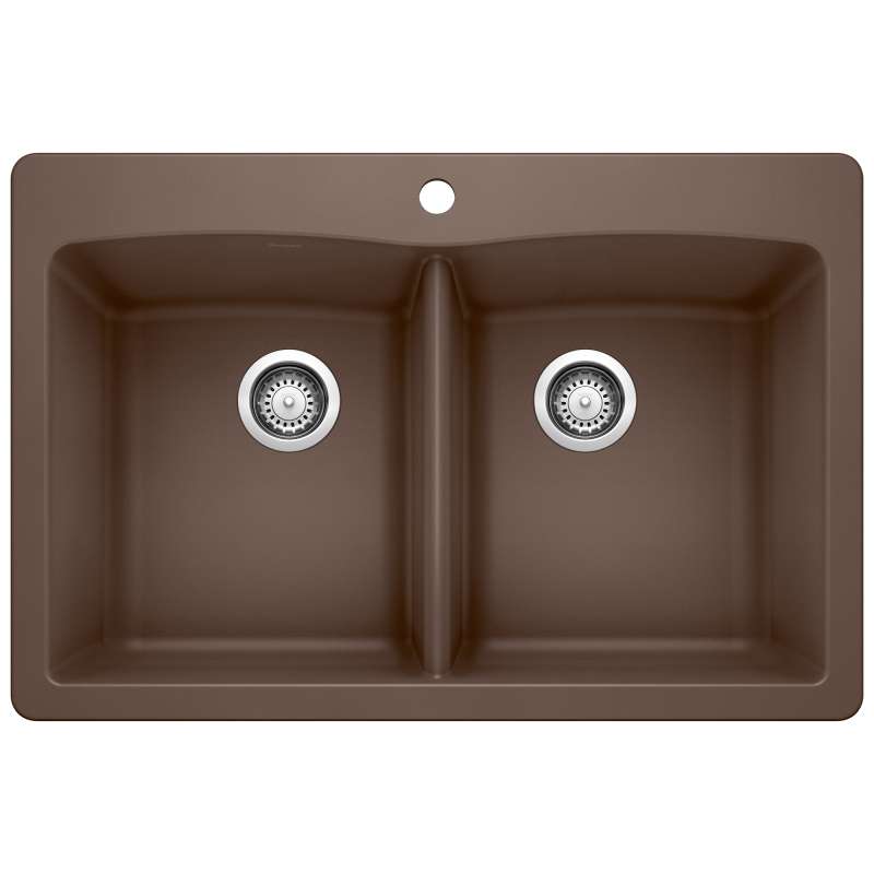 The DIAMOND 50/50 DOUBLE BOWL DUAL MOUNT KITCHEN SINK features a 50/50 bowl design, offering plenty of room for rinsing, washing, soaking, spraying and straining operations. The ideal choice for those who wash dishes by hand, you can stack dirty dishes and utensils in one sink while prepping in the other. Made of SILGRANIT(R), DIAMOND kitchen sinks are engineered to withstand heavy cookware and hot bakeware. Silgranit sinks are not only strong but also beautiful, available in a range of nature-inspired colors that effortlessly complement the latest kitchen trends. Combine the DIAMOND sink with a BLANCO faucet and accessories to create a BLANCO UNIT; a seamlessly integrated kitchen solution designed to transform kitchen chores into joyful experiences. Everything you need to drink, prep and clean, all in one place.