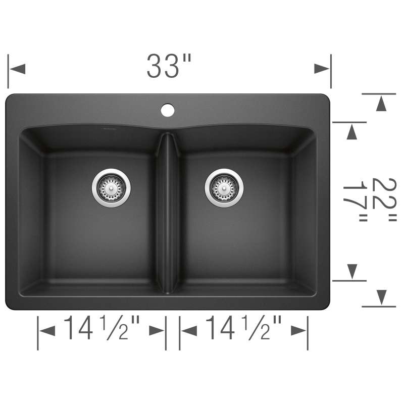 The DIAMOND 50/50 DOUBLE BOWL DUAL MOUNT KITCHEN SINK features a 50/50 bowl design, offering plenty of room for rinsing, washing, soaking, spraying and straining operations. The ideal choice for those who wash dishes by hand, you can stack dirty dishes and utensils in one sink while prepping in the other. Made of SILGRANIT(R), DIAMOND kitchen sinks are engineered to withstand heavy cookware and hot bakeware. Silgranit sinks are not only strong but also beautiful, available in a range of nature-inspired colors that effortlessly complement the latest kitchen trends. Combine the DIAMOND sink with a BLANCO faucet and accessories to create a BLANCO UNIT; a seamlessly integrated kitchen solution designed to transform kitchen chores into joyful experiences. Everything you need to drink, prep and clean, all in one place.