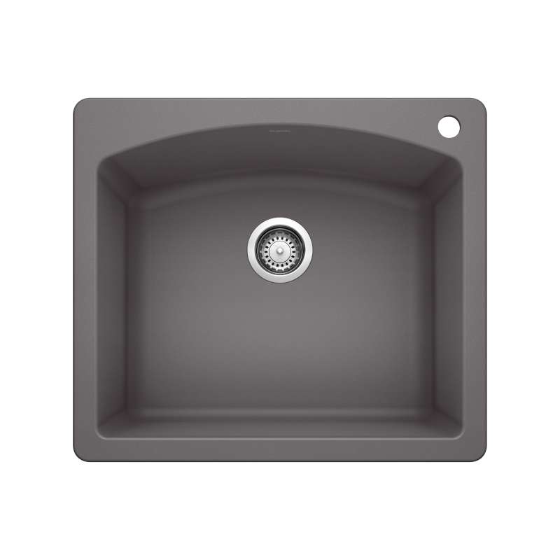 The DIAMOND 25" DUAL MOUNT SINGLE BOWL KITCHEN SINK offers a compact single bowl design, making it the perfect solution for small kitchens or additional prep zones. Made of SILGRANIT(R), DIAMOND kitchen sinks are engineered to withstand heavy cookware and hot bakeware. Silgranit sinks are not only strong but also beautiful, available in a range of nature-inspired colors that effortlessly complement the latest kitchen trends. Combine the DIAMOND sink with a BLANCO faucet and accessories to create a BLANCO UNIT; a seamlessly integrated kitchen solution designed to transform kitchen chores into joyful experiences. Everything you need to drink, prep and clean, all in one place.