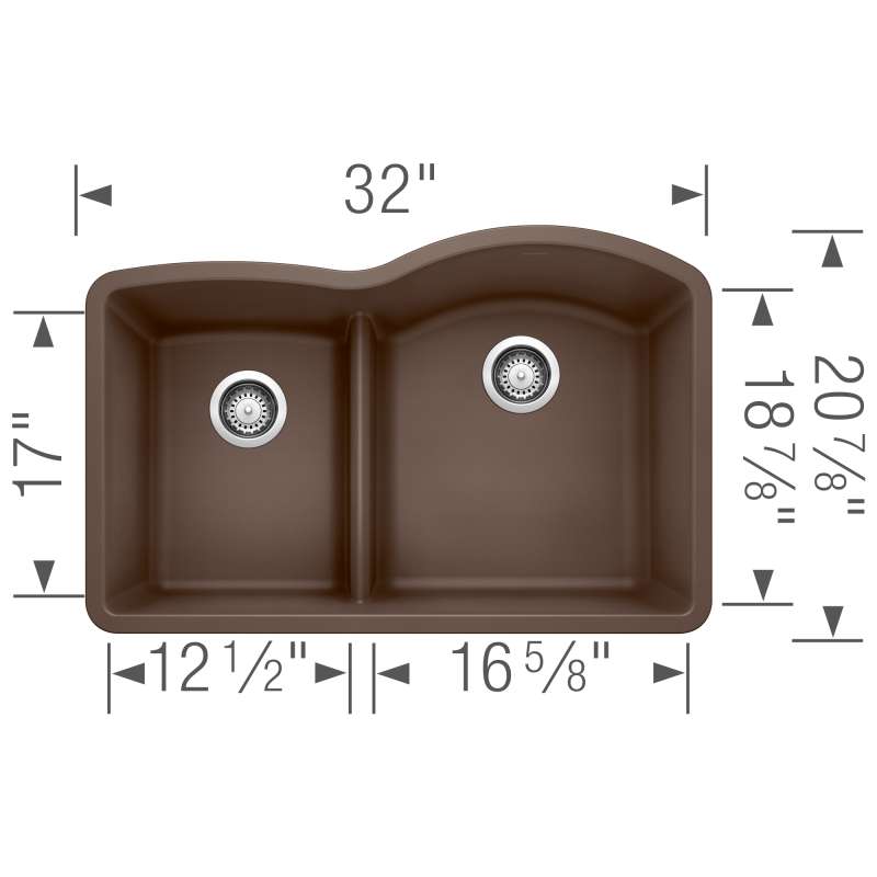 Diamond SILGRANIT 32" 40/60 Reverse Double Bowl Undermount Kitchen Sink with Low Divide - Café, 441609 Cafe Brown