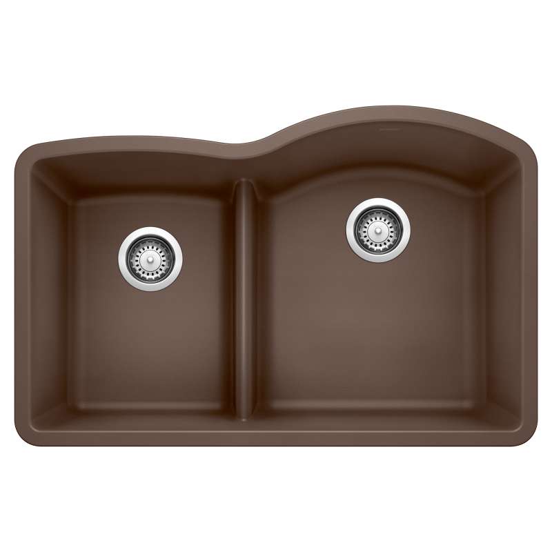 • Diamond SILGRANIT 32" 40/60 Reverse Double Bowl Undermount Kitchen Sink with Low Divide - Café, 441609 Cafe Brown