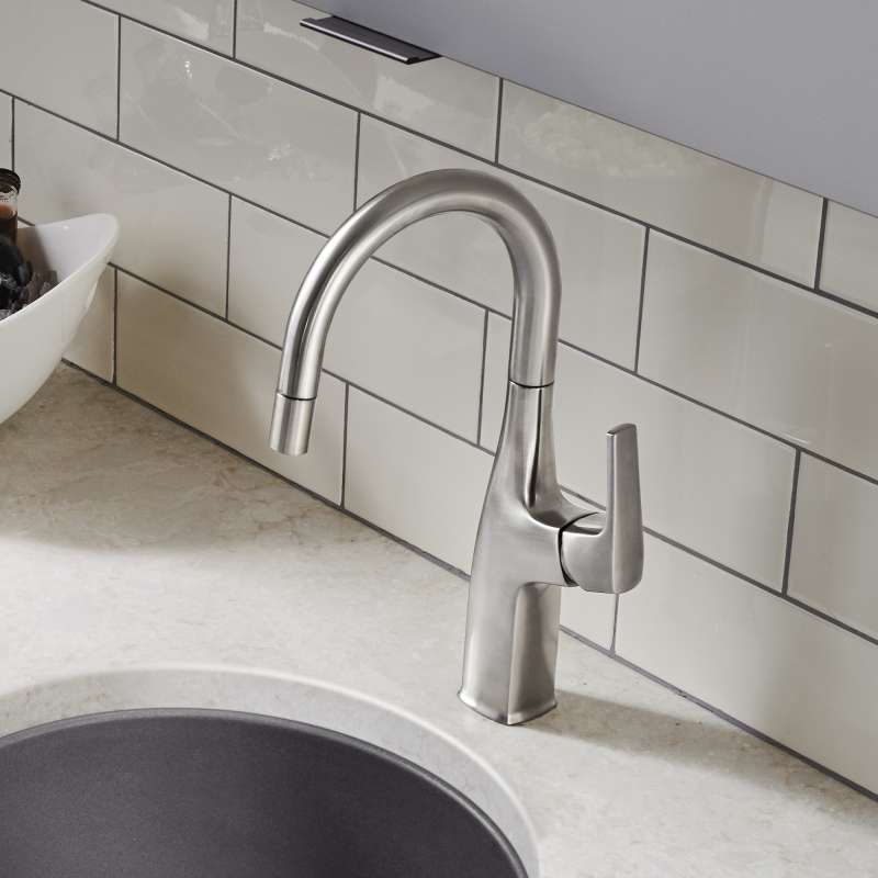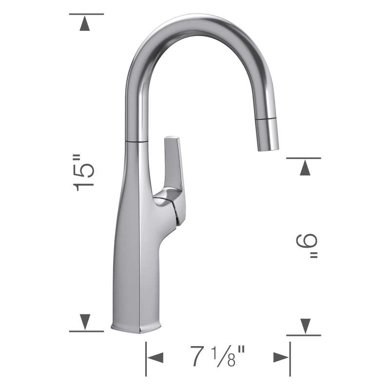 Where form and function unite. The RIVANA BAR FAUCET delivers powerful performance with sleek design aesthetics. A clean, square design at the faucet base transitions into a rounded spout, blending organic shapes with ergonomic function. The BLANCO RIVANA features a concealed spray-head for a streamlined, modern design and can be easily installed in kitchen islands, wet/dry bars, or smaller kitchens with less clearance space.