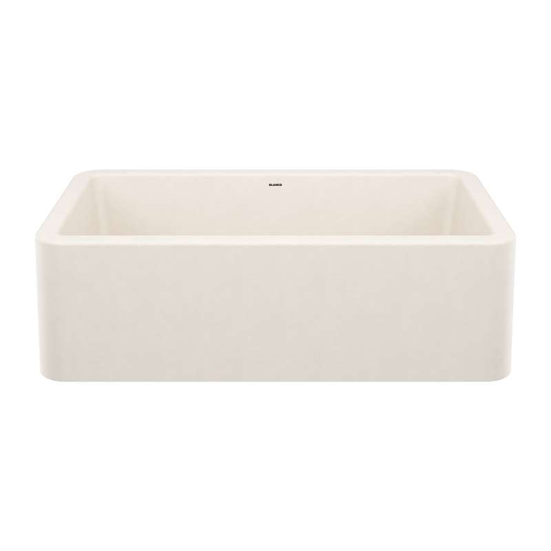 The IKON farmhouse sink is a fresh take on the classic farmhouse style. The kitchen sink's slightly angled apron-front design adds architectural detail and comes in a range of nature-inspired colors that complement the latest kitchen trends. The IKON 33" sink features a spacious single bowl for easy washing of large pots and pans. Made of BLANCO's patented SILGRANIT(R) composite material, IKON sinks are engineered to withstand heavy cookware and hot bakeware. Combine the IKON 33" sink with a BLANCO faucet and accessories to create a BLANCO UNIT; a seamless, fully-integrated kitchen solution designed to transform kitchen chores into joyful experiences.