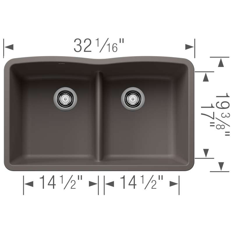 The DIAMOND DOUBLE BOWL UNDERMOUNT KITCHEN SINK with LOW DIVIDE features a 50/50 bowl design with low divide, offering plenty of room for rinsing, washing, soaking, spraying and straining operations. The convenient low divide sits just 5-1/2" from the sink bottom, making it easier to handle large pots and baking sheets while dividing the sink into cleaning and prepping bowls. Made of SILGRANIT(R), DIAMOND kitchen sinks are engineered to withstand heavy cookware and hot bakeware. Silgranit sinks are not only strong but also beautiful, available in a range of nature-inspired colors that effortlessly complement the latest kitchen trends. Combine the DIAMOND sink with a BLANCO faucet and accessories to create a BLANCO UNIT; a seamlessly integrated kitchen solution designed to transform kitchen chores into joyful experiences. Everything you need to drink, prep and clean, all in one place.
