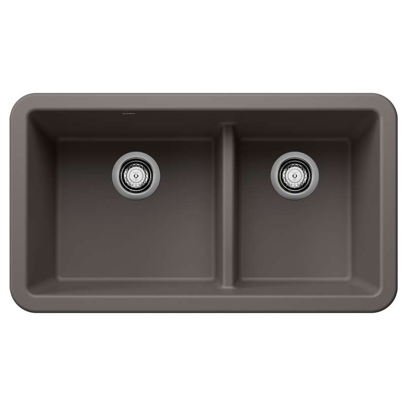 The IKON farmhouse sink is a fresh take on the classic farmhouse style. The kitchen sink's slightly angled apron-front design adds architectural detail and comes in a range of nature-inspired colors that complement the latest kitchen trends. The IKON 33 13/4 Low Divide features a convenient low divide which sits just 5-1/2" from the sink bottom, making it easier to handle large pots and baking sheets while dividing the sink into cleaning and prepping zones. Made of BLANCO's patented SILGRANIT(R) composite material, IKON sinks are engineered to withstand heavy cookware and hot bakeware. Combine the IKON 33" double bowl sink with a BLANCO faucet and accessories to create a BLANCO UNIT; a seamless, fully-integrated kitchen solution designed to transform kitchen chores into joyful experiences.