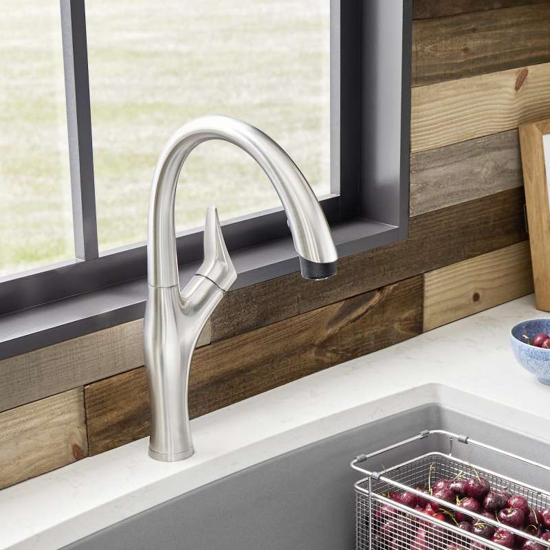 Winner of the Red Dot design award, the ARTONA collection is defined by artistic forms and hardworking features. Available in a wealth of premium color-coordinated finishes, the ARTONA HIGH-ARC PULL-DOWN KITCHEN FAUCET features a gooseneck spout and a wavy, organic body. Perfect for transitional kitchens or laundry rooms, the ARTONA adds a sculptural element to your space. Match your SILGRANIT sink with a color-coordinated faucet and breathe new life into your space with a pop of color.