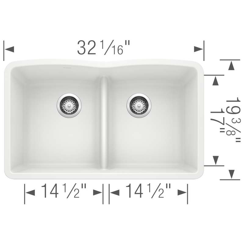 The DIAMOND DOUBLE BOWL UNDERMOUNT KITCHEN SINK with LOW DIVIDE features a 50/50 bowl design with low divide, offering plenty of room for rinsing, washing, soaking, spraying and straining operations. The convenient low divide sits just 5-1/2" from the sink bottom, making it easier to handle large pots and baking sheets while dividing the sink into cleaning and prepping bowls. Made of SILGRANIT(R), DIAMOND kitchen sinks are engineered to withstand heavy cookware and hot bakeware. Silgranit sinks are not only strong but also beautiful, available in a range of nature-inspired colors that effortlessly complement the latest kitchen trends. Combine the DIAMOND sink with a BLANCO faucet and accessories to create a BLANCO UNIT; a seamlessly integrated kitchen solution designed to transform kitchen chores into joyful experiences. Everything you need to drink, prep and clean, all in one place.