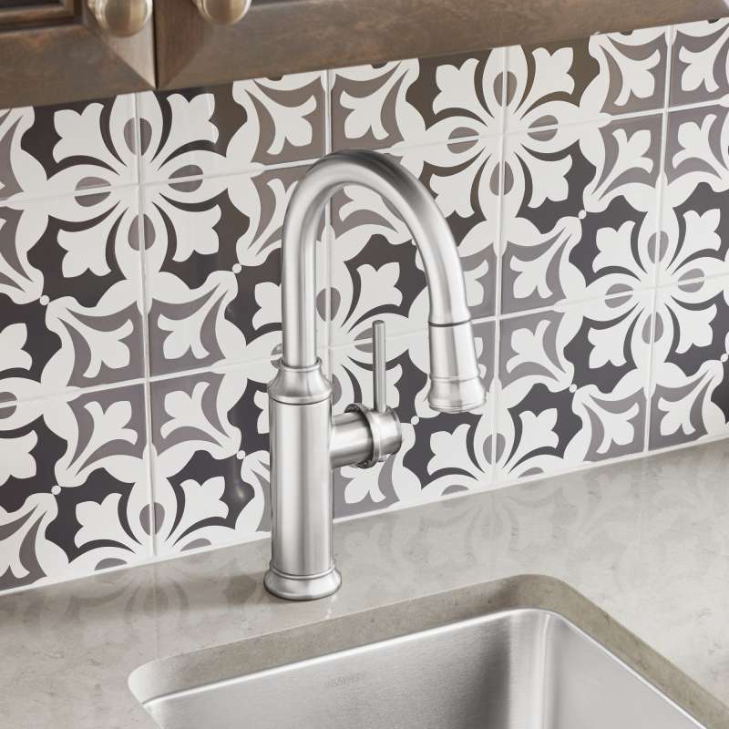 Two worlds collide with the EMPRESSA PULL-DOWN BAR FAUCET - modern features with traditional, old world detailing. Inspired by German wine country, the EMPRESSA BAR FAUCET is modeled after the shape of vintage wine presses found across Europe. Characterized by signature details such as vintage wine press-inspired handles and an integrated pull-down single-function spray, the EMPRESSA is the perfect example of classic European design infused with modern features and functionality. The EMPRESSA can be easily installed in kitchen islands, wet/dry bars, or smaller kitchens with less clearance space.
