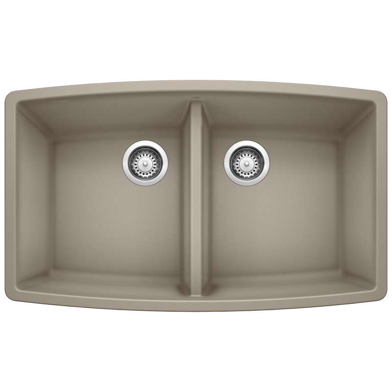 The PERFORMA 5/5 EQUAL DOUBLE BOWL UNDERMOUNT KITCHEN SINK offers a spacious double bowl design. The functionality of a double sink offers plenty of room for rinsing, washing, soaking, spraying and straining operations. The ideal choice for those who wash dishes by hand, you can stack dirty dishes and utensils in one sink while prepping in the other. This kitchen sink is made of SILGRANIT, a patented, certified granite composite material that is engineered to take on the toughest kitchen tasks. SILGRANIT is heat, scratch, stain, chip and impact resistant, making it stronger and more durable than other sink materials. Beautiful and highly functional with its non-porous, hygienic surface, it pushes away liquids and residue resulting in a low maintenance, easy to clean, long-lasting material.