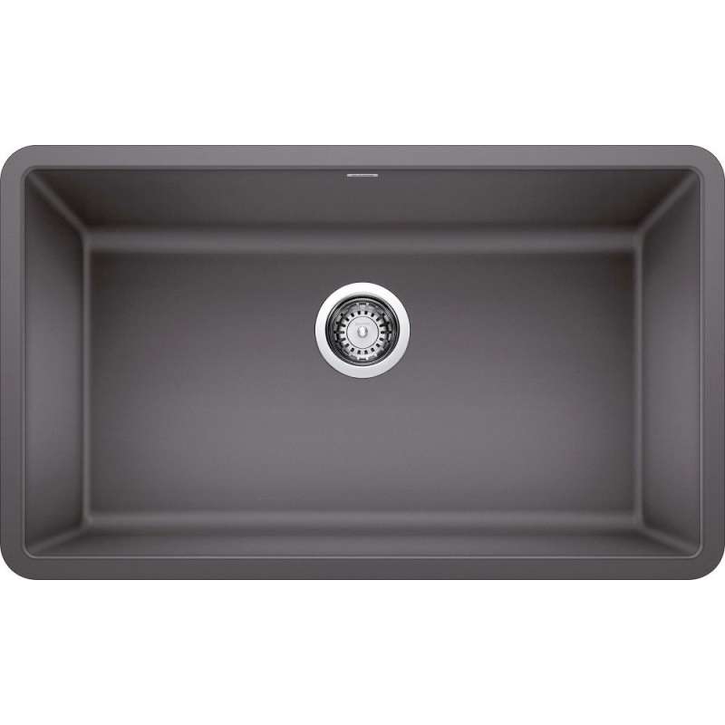 The BLANCO PRECIS SILGRANIT 30 in. UNDERMOUNT KITCHEN SINK is inspired by professional kitchen sinks in both form and functionality. With crisp angular shaping and simple but spacious design, this kitchen sink easily conquers the demands of everyday life. Made from the rock hard, durable SILGRANIT patented surface, it's no wonder this hardworking granite composite sink collection is one of our most popular. Beautiful and highly functional, the PRECIS kitchen sink features a smooth surface that is resistant to chips, scratches and heats up to 536 Degrees F. Even a fork or the bottom of a hot pan can't damage BLANCO SILGRANIT sinks. The colorful, non-porous surface also makes the bowl resistant from all stains, household acids and alkali solutions as well as easy-to-clean.