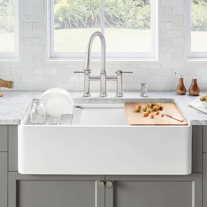 BLANCO PROFINA is the farmhouse sink with a modern twist. This generous 36" galley-style apron front sink, crafted of BLANCO's durable fireclay material, features an iconic farmhouse look, with thin walls that give it a modern feel. Its ultra-durable surface is fired at over 2,100°F during its crafting process and allows for a perfect, smooth and easy to clean surface for the years of use to come. Our fireclay sinks are borne of artisan hand-finishing techniques and high firing temperatures, making them stain- and chip-resistant without losing their graceful style. And while the beauty and surprising durability of fireclay is timeless, the luxury of its design versatility is more certainly uncommon. Plus, with the center drain location, the process of stacking and washing dishes becomes a simpler task. Its innovative accessory ledge allows for custom accessories to fit within the sink, saving counter space. Durable and stylish, PROFINA is designed to meet the complex demands of today’s modern, hardworking kitchen. For three generations, BLANCO has quietly and passionately elevated the standards for luxury sinks, faucets, and decorative accessories. A family-owned company, BLANCO was founded over 85 years ago in Germany, and recently celebrated a milestone of 25 years in the United States where we are recognized as a leader in quality, innovation, and unsurpassed service.