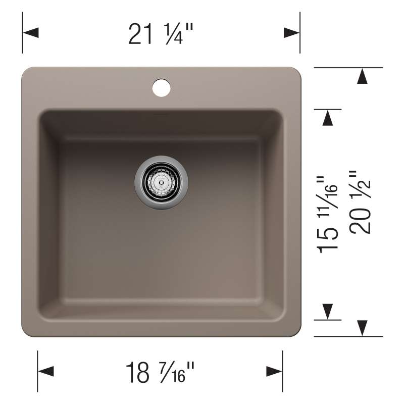 • Liven SILGRANIT 21" Single Bowl Dual Mount Kitchen Sink - Truffle, 443230 Truffle