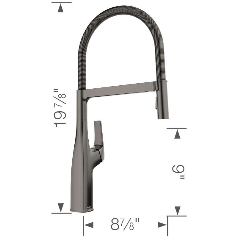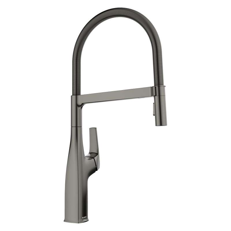 Where form and function unite. Inspired by faucets used in professional kitchens, BLANCO is the originator of the closed coil design and combines industrial style with modern appeal. The BLANCO RIVANA SEMI-PROFESSIONAL KITCHEN FAUCET delivers powerful performance with sleek design aesthetics. A clean, square design at the faucet base transitions into a rounded spout, blending organic shapes with ergonomic function. The BLANCO RIVANA provides home chefs with the ultimate in luxury and performance.