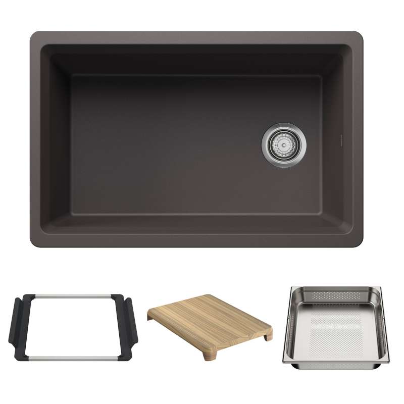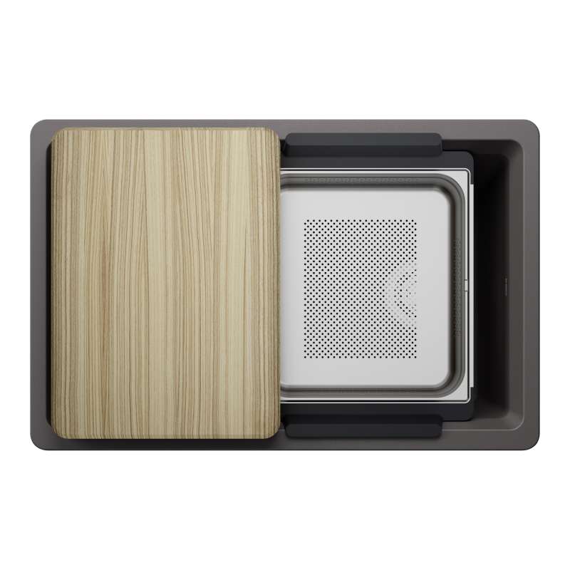 Inteos SILGRANIT 30" Single Bowl Reversible Undermount Workstation Kitchen Sink - Cinder, 443305 Cinder