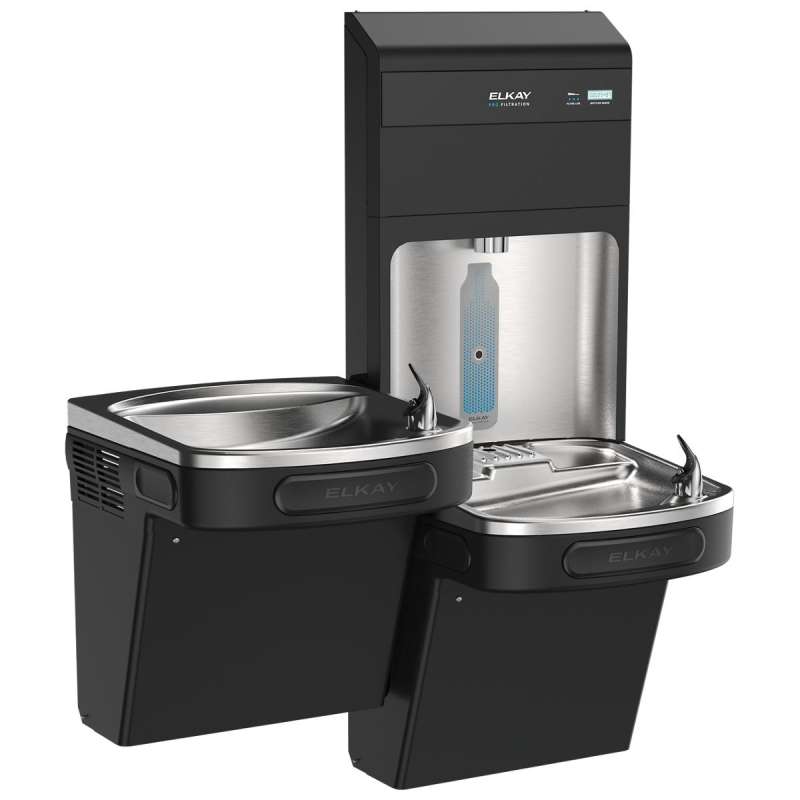 Elkay Pro Filtration Bottle Filling Station & Bi-Level Ada Cooler Refrig Ultra-Capacity Lead + Sediment Prefilter Bk, LZSTL8WSBPRO-FSR5 Black Stainless