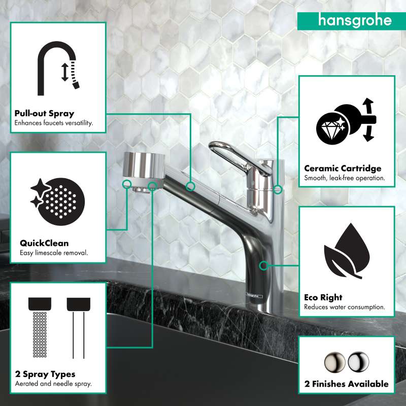 • Hansgrohe Talis Loop Talis Loop 2-Spray Kitchen Faucet, Pull-Out, 1.75 Gpm In Chrome, 4704005 Chrome