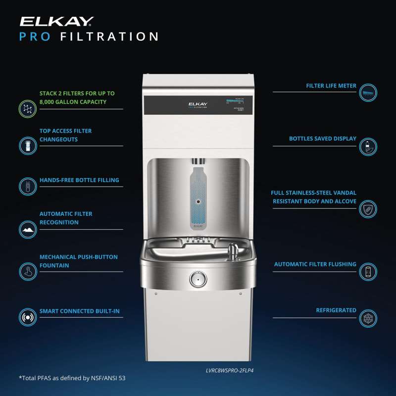 Elkay Pro Filtration Vandal-Resistant Connected Bottle Filling Station&Sgl Ada Cooler Refrig Dbl Total Pfas*+Lead Rd Ss, LVRC8WSPRO-2FLP4