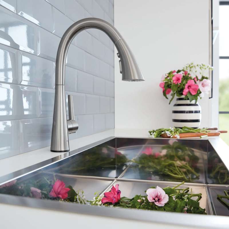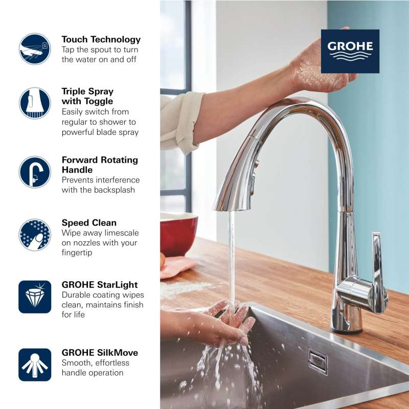 GROHE Zedra Single-Handle Pull Down Kitchen Faucet Triple Spray 1.75 GPM (6.6 L/min) with Touch Technology, 30205DC2